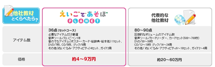 これだけ含まれていてこの価格は他の幼児英語教材よりも大変お得と言えます。